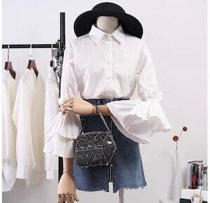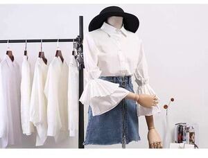 フリルスリーブシャツ デザインブラウス ガーリー エレガント E791