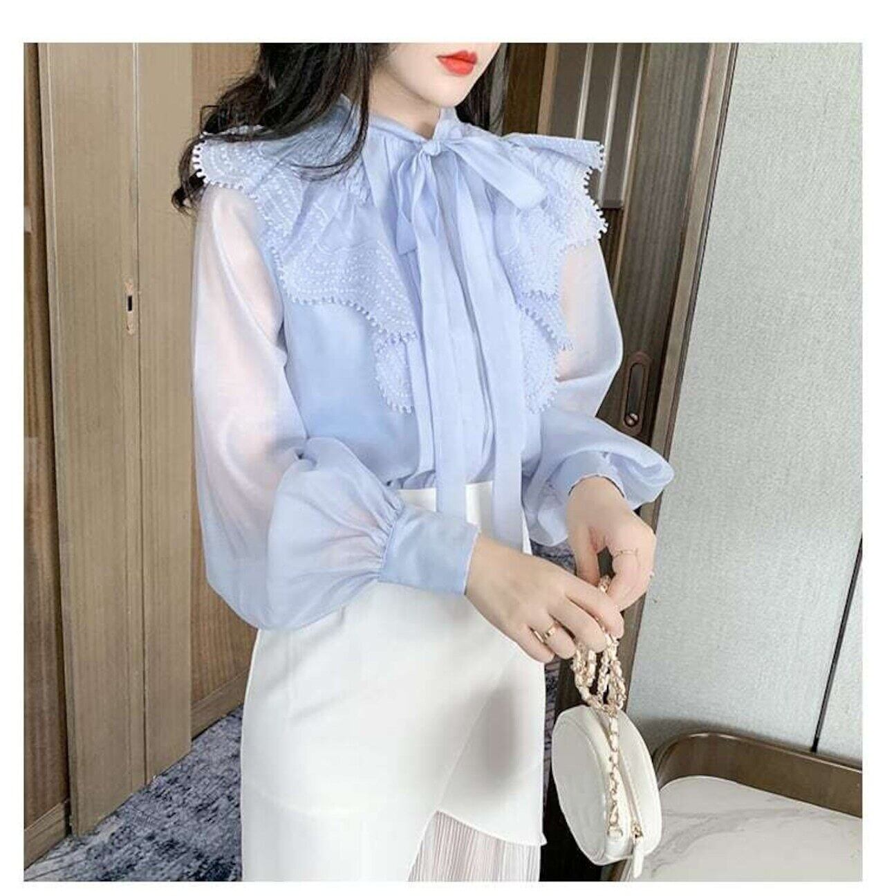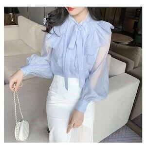 シフォンブラウス レーストップス フリル リボン フェミニン E511