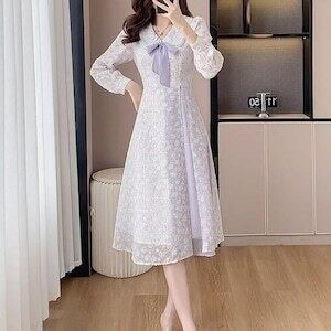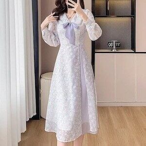 パールカラーワンピース シフォンワンピ ガーリー お呼ばれ E794