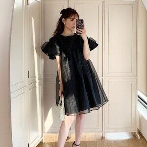 チュールワンピース ミドル丈ワンピ ドレス ガーリー エレガント E783