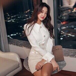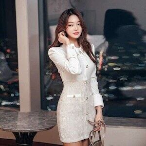 ツイードワンピース ドッキングワンピ シャツワンピ オフィスカジュアル E753