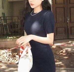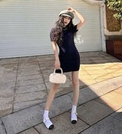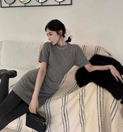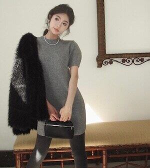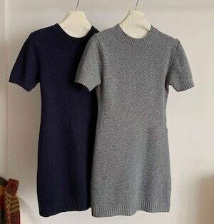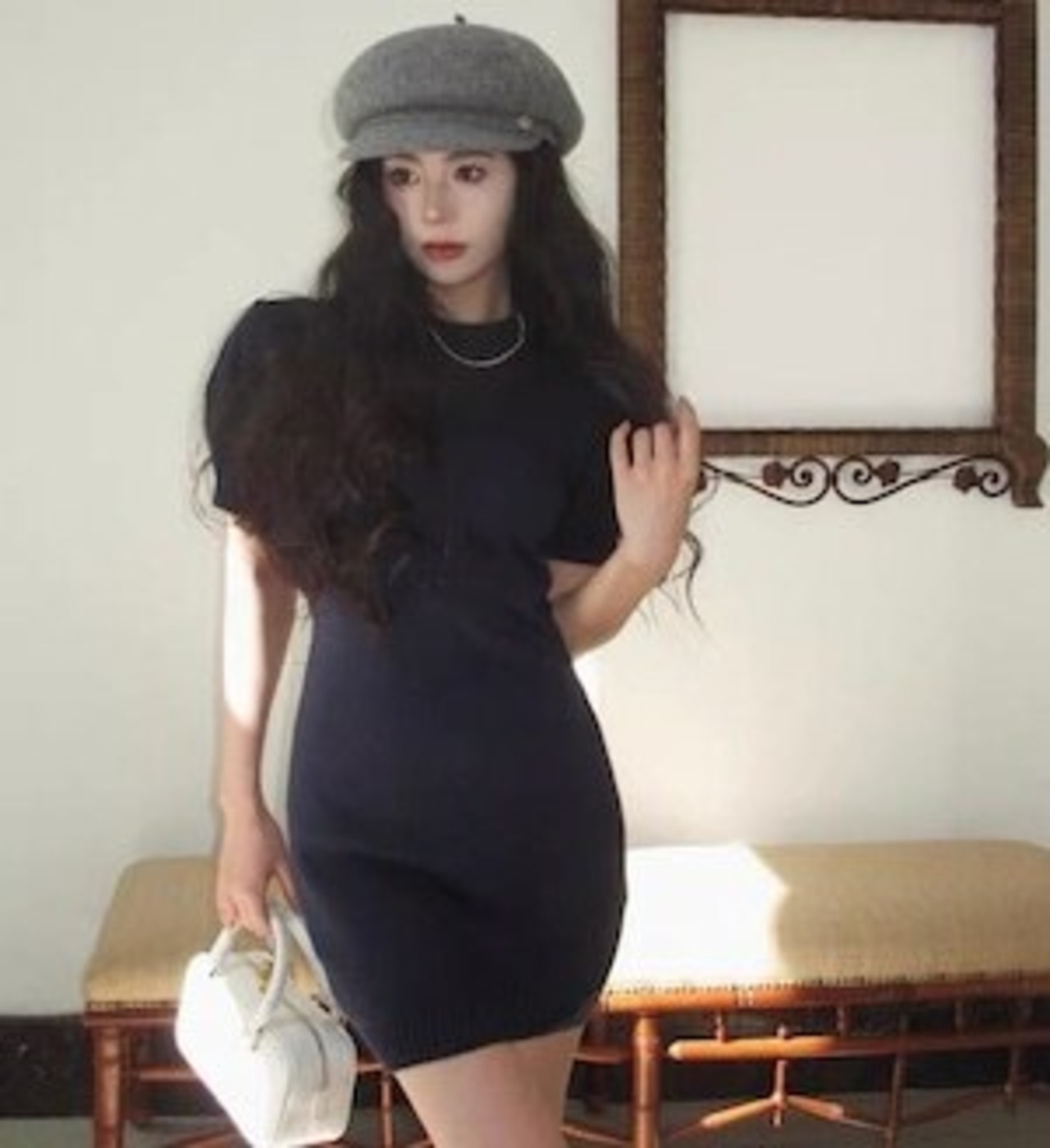 ニットミニ丈ワンピース パフスリーブ半袖ニット エレガント ガーリー E710