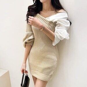 ドッキングワンピース アシンメトリーデザイン ミニワンピ ガーリー E704