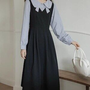 丸襟ワンピース ドッキングワンピース ストライプ柄 ガーリー E569