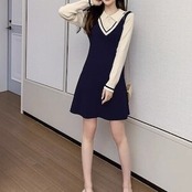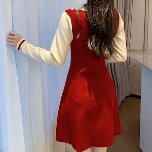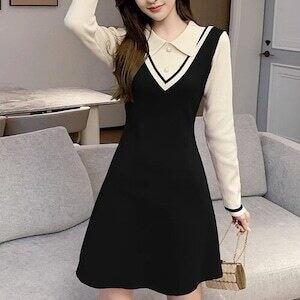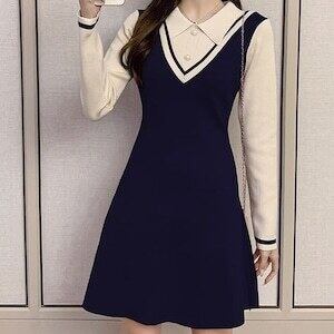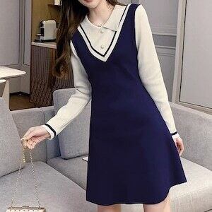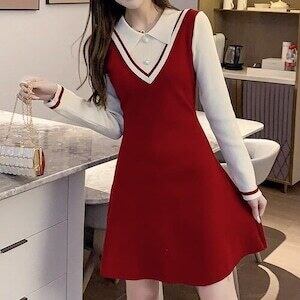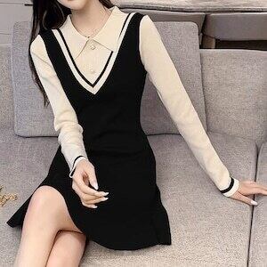 ポロシャツ風ワンピース バイカラー ニットワンピ ガーリー E565