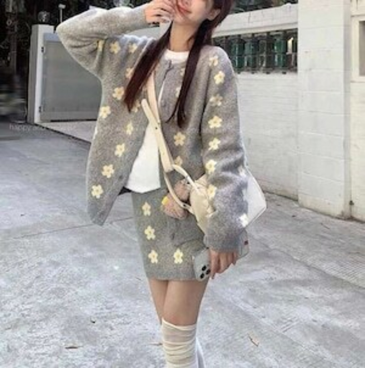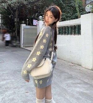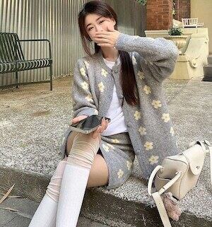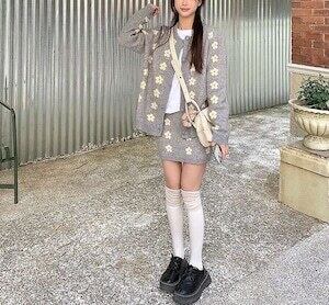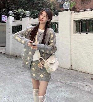デイジー柄セットアップ カーディガン ミニスカート ガーリー E723