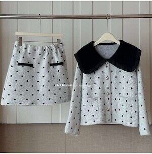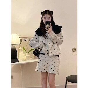 セットアップ★カーディガン スカート ドット ツーピース set up レディース 韓国 オルチャン 可愛い 通学 デート お出掛け E051