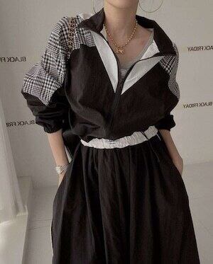 セットアップ★ショートジャケット Aラインスカート スポーティー ツーピース レディース E050