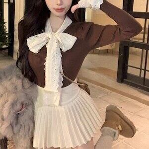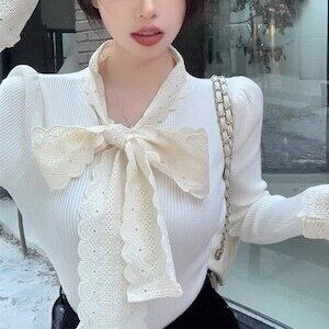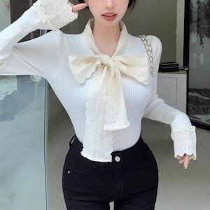 レースリボントップス リボンブラウス エレガント ガーリー E777
