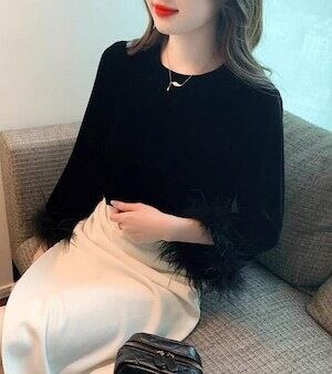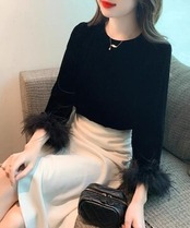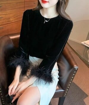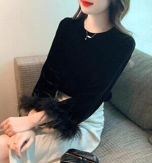 ファー付きトップス ベルベットトップス エレガント お呼ばれ E736