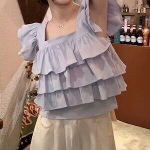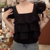 フリルトップス スクエアネック ガーリー カジュアル E364