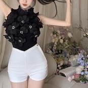 フラワートップス プリーツトップス ドレッシー エレガント E363
