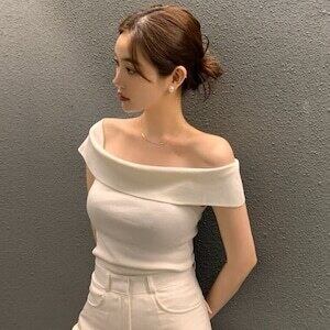 オフショルトップス ベーシックトップス カジュアル ガーリー E356