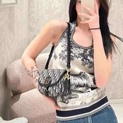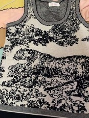 プリントトップス ノースリーブ Uネック ショート丈 カジュアル モード E234