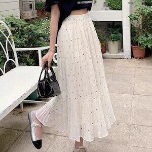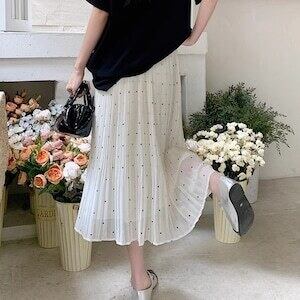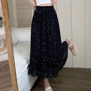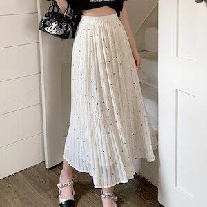 ドット柄スカート プリーツスカート ロング丈 フェミニン E820